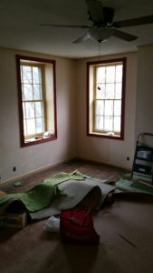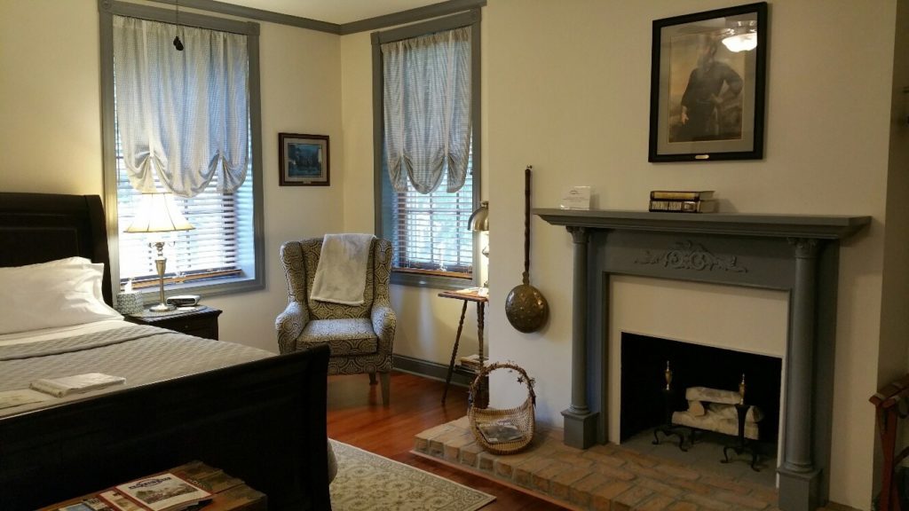 Right after Valentine’s Weekend we closed off the Thomas Jackson Room to begin the long overdue renovation. This room was one of the original guest rooms when the house was turned into a bed and breakfast thirty years ago. This second floor addition was added around 1804. When the west side of the house was added between 1832 and 1845, this room became the formal parlor. It was truly fascinating to uncover some of that early construction during the renovation. We are very pleased with the project and would like to thank Anne Marie & Marty of Uphome Renovations, LLC for the tremendous work they did. They were also extremely helpful in recommending an electrician, drywaller , and brick mason, all local craftsman, who did an excellent job as well. Another ‘Thank you’ goes to Antietam Wood Floors for repairing and restoring the hardwood floors. They turned out even better then expected and really make the room fitting for a general like “Stonewall” Jackson.