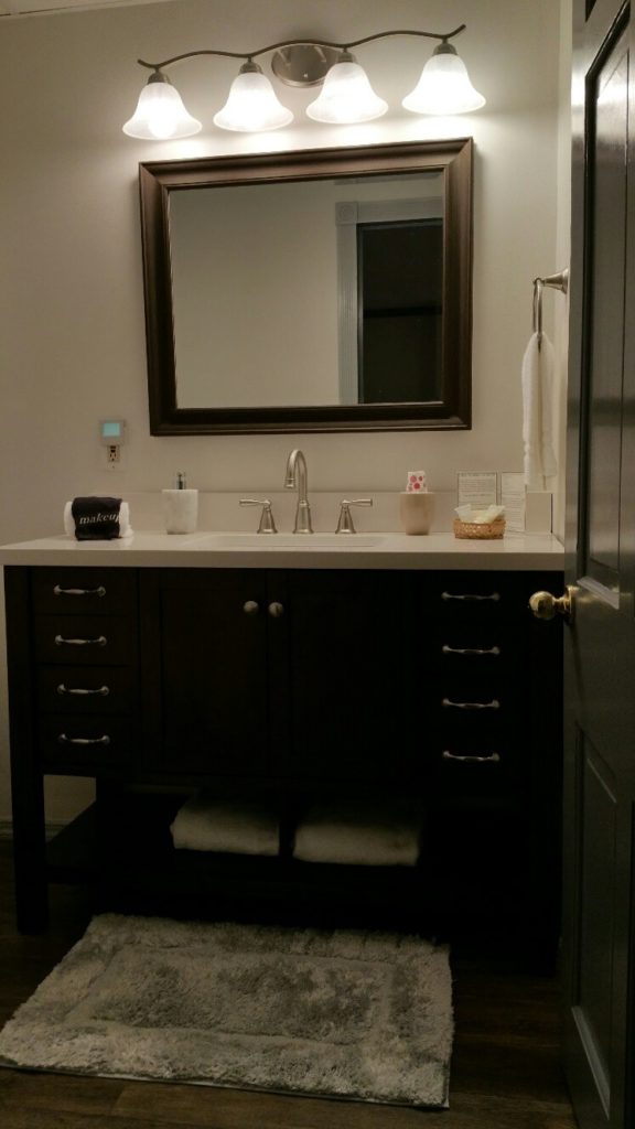 Before the room had wall-to-wall mauve carpet, wallpaper, and a functional, but very dated, bathroom.