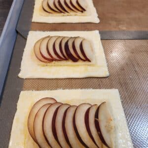 Preheat your oven to 425°F. Roll the puff pastry sheet out to an even rectangle, about 1/4-inch thick. If making individual tarts, cut into 8 even sized pieces.